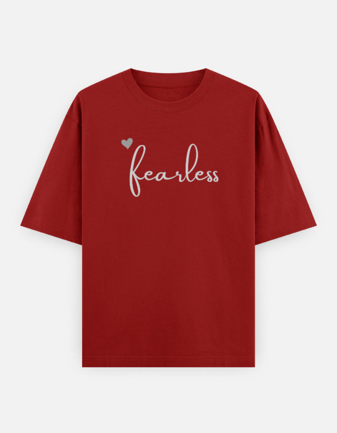 Fearless Graphic Printed Classic Oversized T-shirt For Women [240GSM] - Red / S