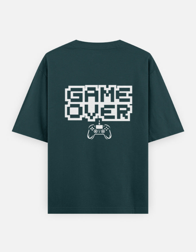 Game Over Graphic Front & Back Printed Classic Oversized T-shirt For Men [240GSM] - Navy Blue / S
